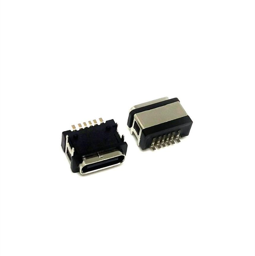 TYPE-C 6PIN板上四脚插板dip 防水母座 防水等级IPX7级