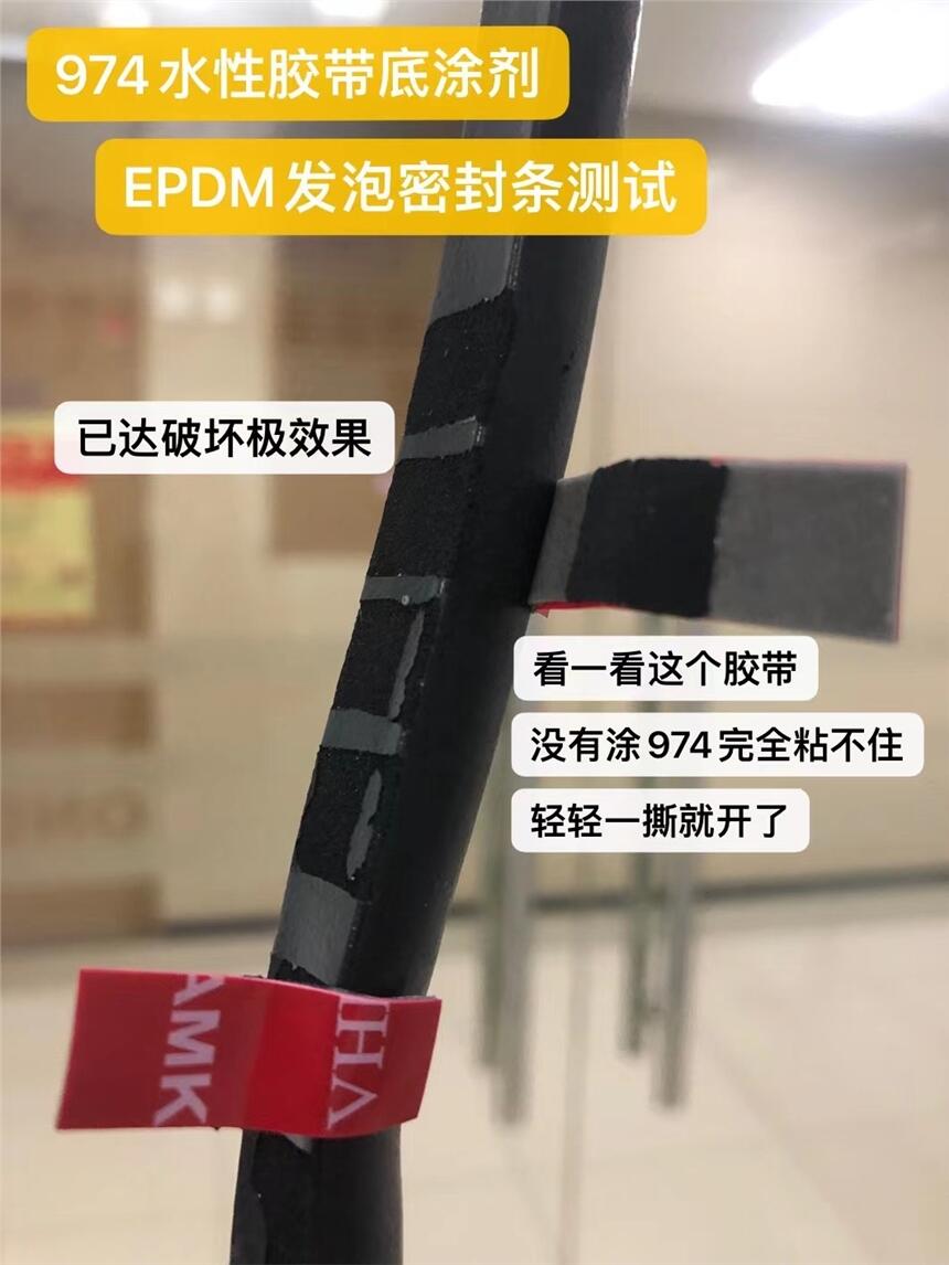 恒英974处理/底涂后Epdm、PP、PET、TPE、BOPP、TPU、TPO、PVC、NR、NBR、SBS橡胶材料,玻璃,金属等基材处理后与胶带(尤其是VHB胶带),用于橡胶脚垫背胶。