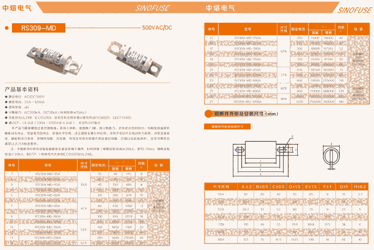 连接方式:扁平出线螺栓紧固额定电压:AC500VDC440V使用电压1000V