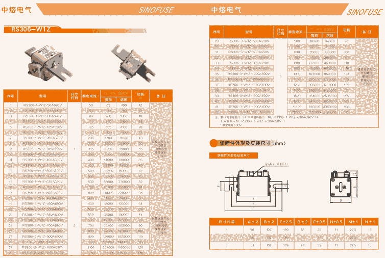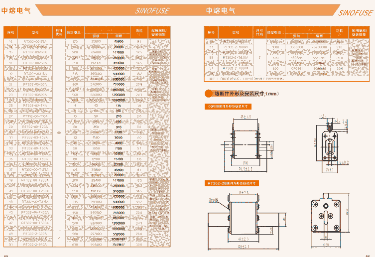 中熔熔断器RT302-00-T40A RT302-00-T50A
