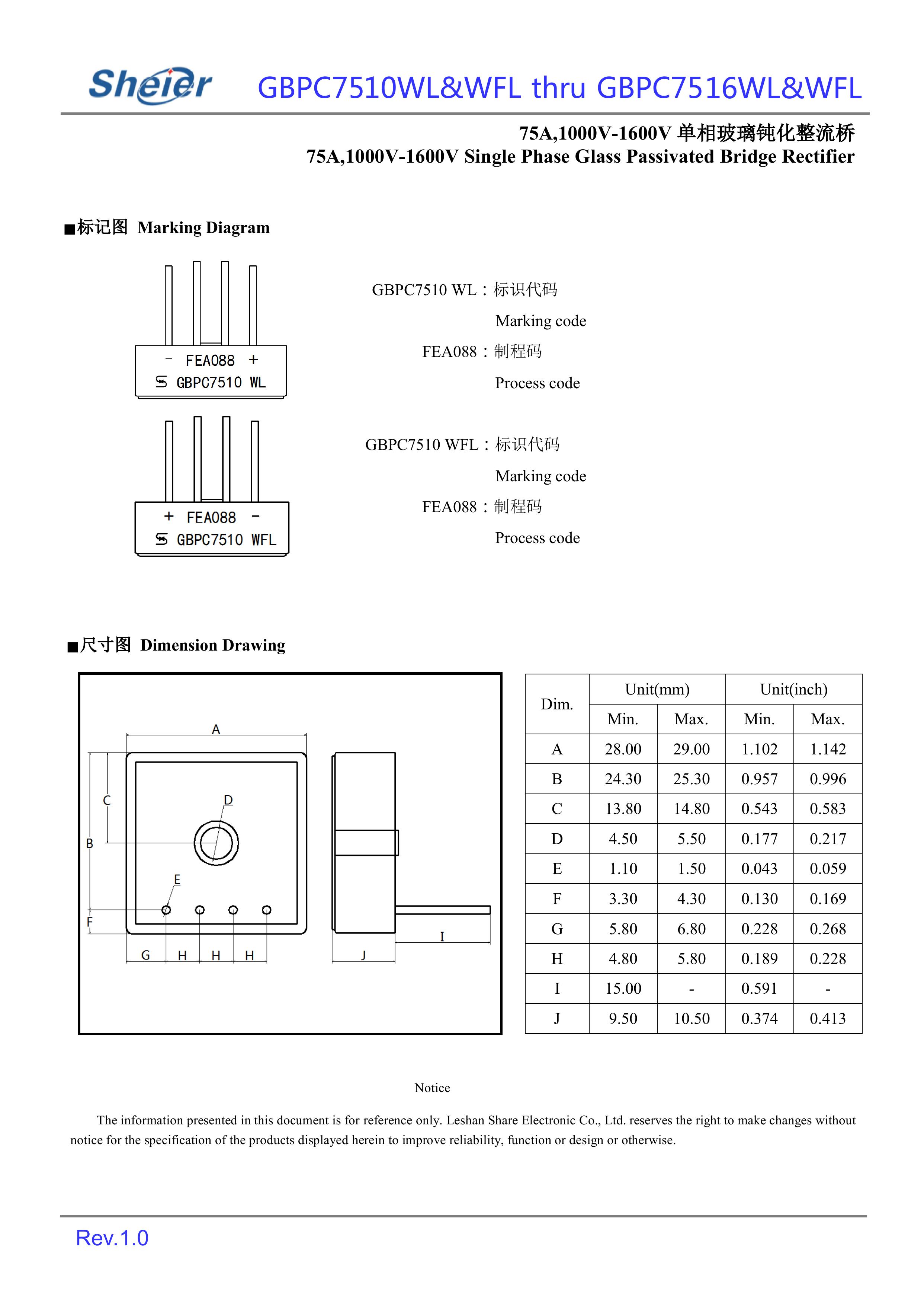 sheier/乐山希尔 GBPC7516WL/GBPC7512WL/GBPC7510WL 全新原厂原装高压大电流分立式功率整流器件整流桥,1600V~600V、75A、单排针脚式方形桥堆:GBPC7516WL/GBPC7512WL/GBPC7510WL。正向整流电流:75A;反向峰值电压:1600V~600V;;正向压降VF:1.2V;封装方式:ST-S针脚式;最小包装数量:100pcs/盒。