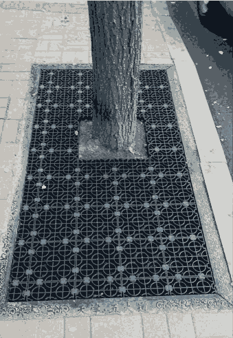 装饰性好: 将圆、半圆及十字采用独特连接任意组合,颜色可调,形成的图案方圆有度,规整协调,使树池形成一种装饰和点缀。