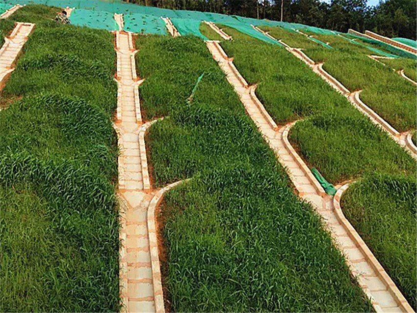 边坡植物防护的主要目的是固土护坡、防止冲刷,兼有美??化环境的功能。一般应选择干旱、瘠薄、根系发达、覆盖度好、易于成活、便于管理、同时兼顾景观效果的草本或木本植物。边坡以种植草本地被为主,根据不同地段的实际情况,采用丛植、列植等绿化模式,尽量做到乔、灌、花、草搭配,形成不同景观的植物群落。