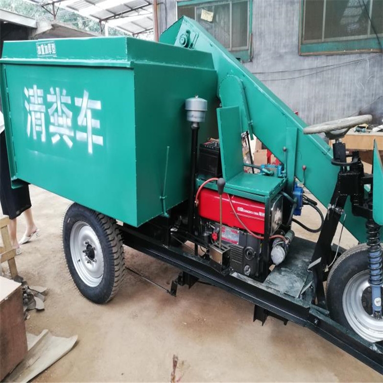 规模化奶牛场清粪车用于牛场清粪时,置于牛栏侧面的凹槽内,将牛粪推到车内后拉出清理。本实用使用方便、安全,成本低,能大量的推广应用,适合规模化奶牛场使用。