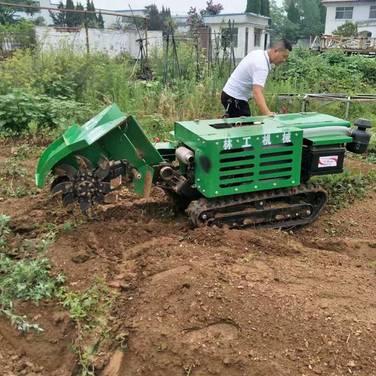 多功能 履带式开沟施肥机安装上不同的配件可以进行单独旋耕、回填、单独开沟、施肥、也可混合搭配使用。产品结实耐用,性能优越,操作方便.耐用:机身加厚,密,履带式行走,可进行原地转向。刀具都是加厚75号猛钢锻造,非常耐磨耐用,工作效率高.