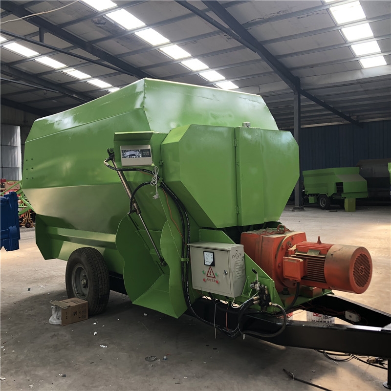 混合饲料和产量的提高,因为将各种饲料和微量元素加入饲料搅拌机混合搅拌后,可以使牲畜无选择的采食配方所确定的饲料成份,有效保证了动物对蛋白质的需求,使牛奶产量大大增加,动物体质也有很大改进,减小了新陈代谢疾病。