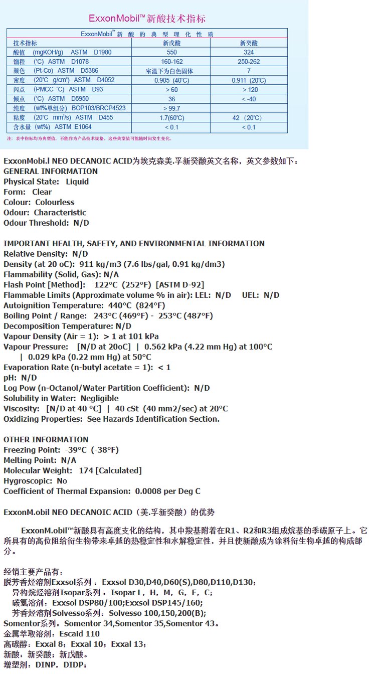 ExxonM.obil NEO DECANOIC ACID/新癸酸 规格齐全 有效成分含量 | 99 | ||