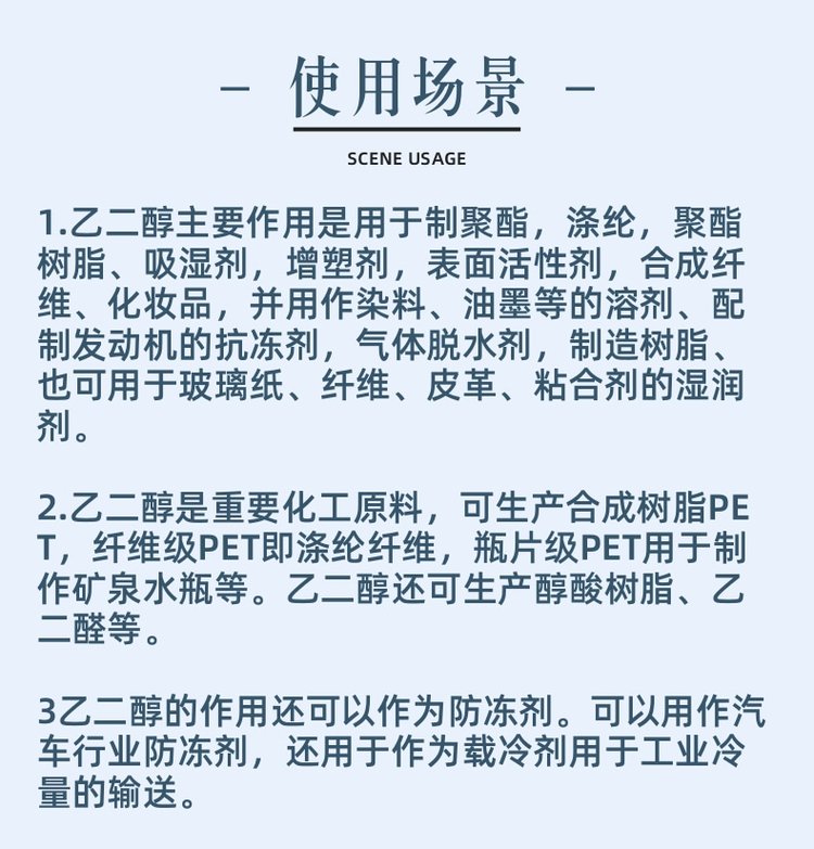 乙二醇用途 | 制冷剂,清洗剂,增稠剂 | ||