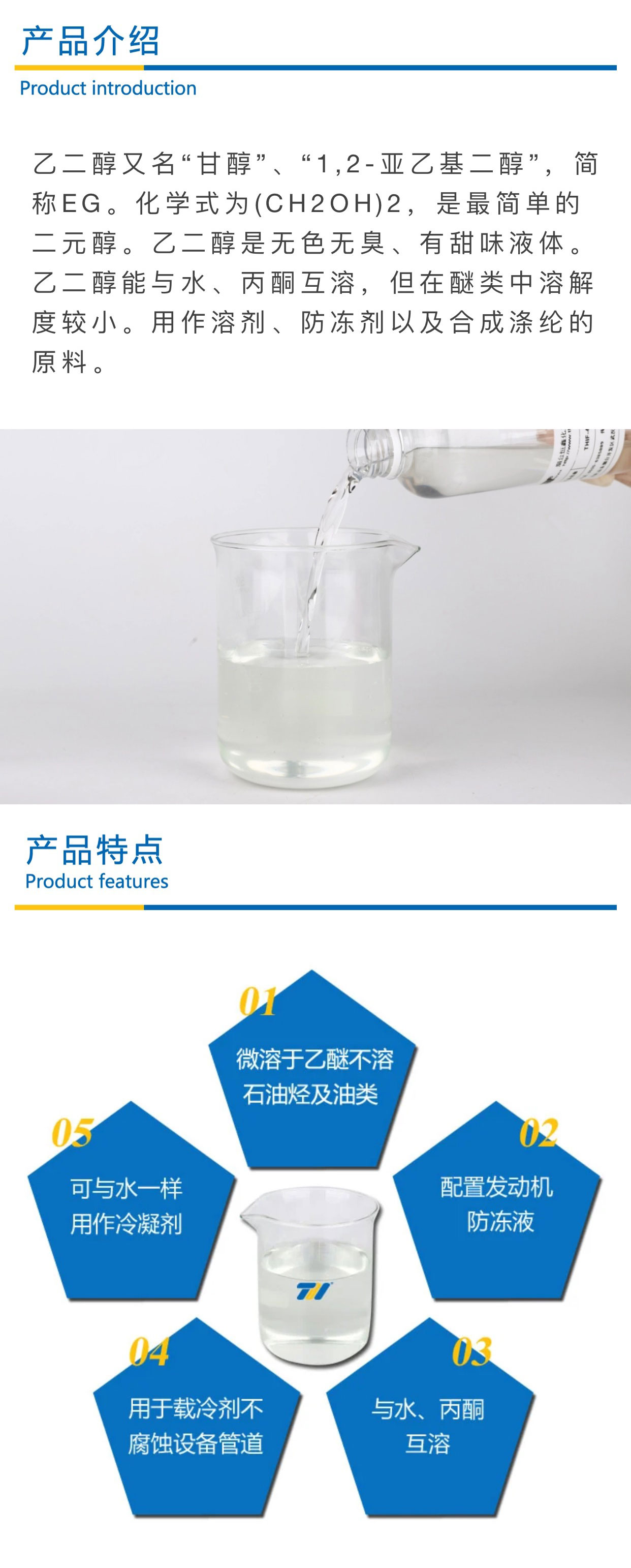 乙二醇 含量>99.9% 涤纶级/聚酯级 制冷不腐蚀设备管道 防冻液原料 产品名称 | 乙二醇 | ||