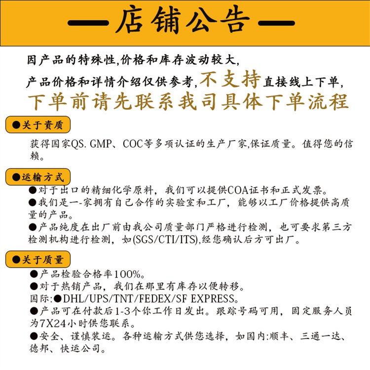 包装:1公斤/铝箔袋,25公斤/密封纸板桶&双层塑料包装。