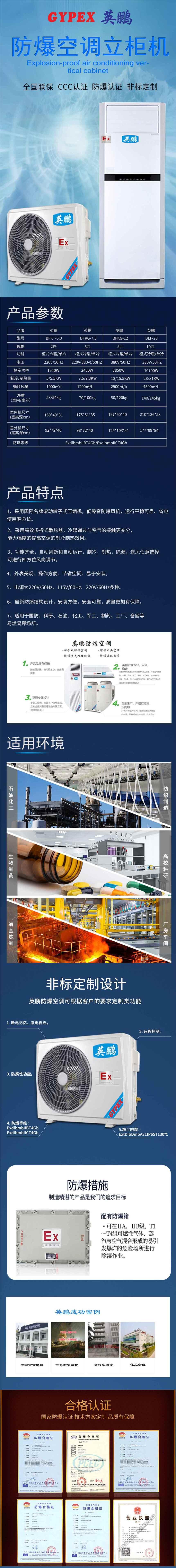 广州安菲防爆空调系列机型通过特殊防爆技术加工处理,广泛应用于国防、科研、石油、化工、医药、加工制造、生物等存在ⅡA、ⅡB级,T1~T4组可燃性气体、蒸汽与空气混合形成的易引发的危险场所,是针对有温度控制要求场所设计的特种调温空调设备,系列产品均通过国家防爆电气产品质量监督检测中心检验,获得国家防爆电气设备防爆合格证:防爆空调机CNEX09.0375/0376;其外形美观,设计合理并具有安装维修方便等特点,全系列防爆产品内部采用名牌压缩机、微电脑控制、数字显示,具有噪声低、性能稳定、操作简便等优点。深受广大特需行业客户喜爱,并以部分录入特需行业定点采购名录。