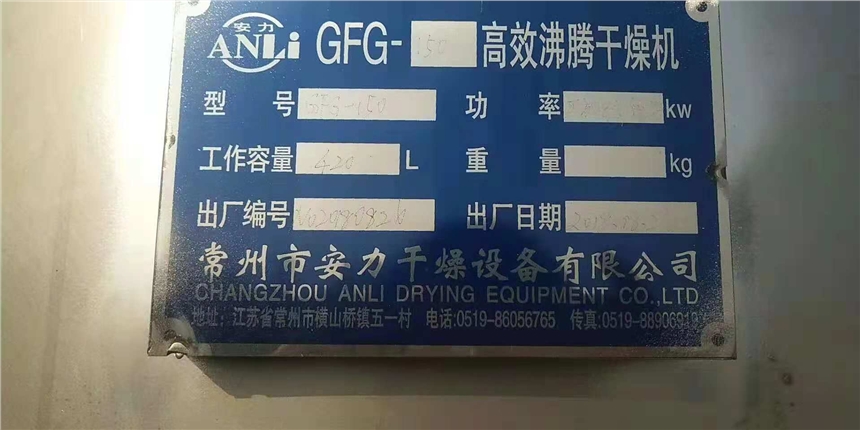 出售二手GFG-150型高效沸腾干燥机、附件齐全、设备九层新