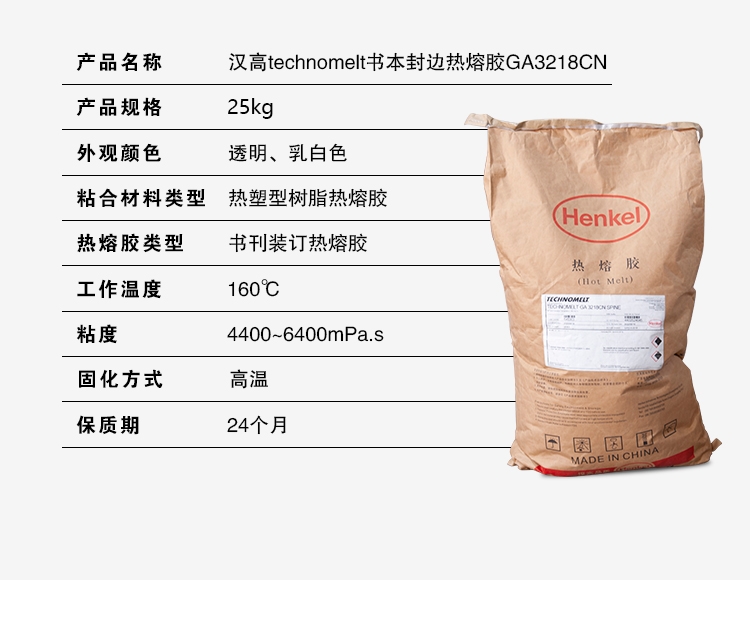 汉高GA 3218CN乳白透明胶粒铜版纸标书装订胶透明胶胶装机25kg/袋
