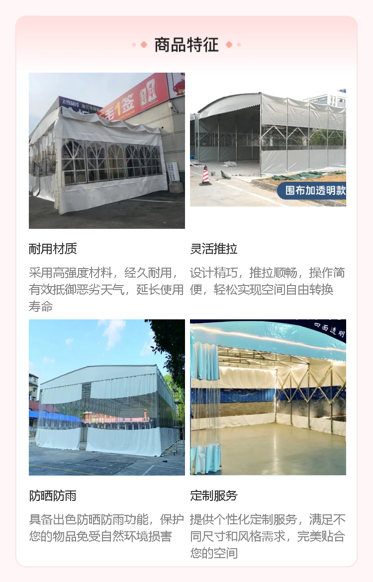 推拉棚手动开启长方形镀锌钢管防晒雨棚加厚立柱