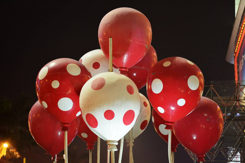 产品名称:?玻璃钢五彩气球雕塑 商业街布景雕塑