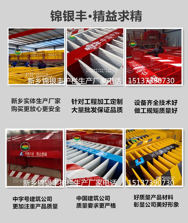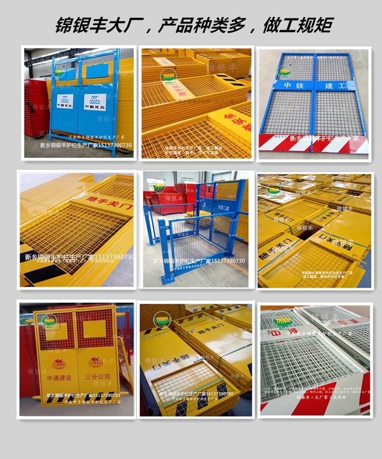 平顶山安全网电梯门加工供应商电话找新乡锦银丰大厂,商丘 安阳人货电梯工地安全门供应商电话,锦银丰设备齐全质量稳定的实体生产型护栏厂家,品种齐全,在建筑行业拥有良好口碑的建筑护栏生产厂家。与中国六冶,中国中冶,中国建筑,中建一局,中建二局,中建三局,中建七局,中建八局,河南二建,河南四建,贵阳中建,河北建设,安信,瑞安等建筑公司,还有我们熟悉的防护,围墙防护栏顺利签约合作,目前已经供货十多公里,多家国企单位合作创造了良好的口碑,得到广大用户和领导的赞扬。我们竭诚欢迎广大用户来河南省新乡市北环实地考察看厂洽谈合作。【工地临边防栏杆】工地指定标准化基坑临边防栏尺寸基坑护栏网西安护栏网现货基坑护栏生产厂家防护栏杆_临边防护栏杆1.锦银丰基坑防护栏杆产品特点:结构简洁,标识醒目,