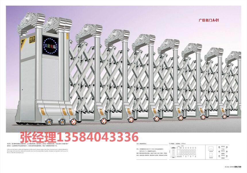南京财门智能科技有限公司主营:不锈钢伸缩门、彩钢伸缩门、铝合金伸缩门、直线自动门等一系列智能产品。本公司注重价格优先服务至上的原则.提供更优的产品,更新的款式,本着精益求精的精神,向客户提供一流的产品,一流的服务,高水平的专业服务和技术支援是我们一直坚守的承诺, 工程项目完成后系统的可用性和可靠性对于我们客户的业务至关重要, 我们的工程维护﹑维修服务灵活快速, 有严格的标准和保障措施。 价格合理,欢迎订购,以信为誉,以质为本的经营理念。电动伸缩门以其出众的品质,卓越的性能和优美的外观受到了广大消费者的赞扬和认可,成为党政机关、企业事业单位、部队、学校、高档住宅区的首选产品。