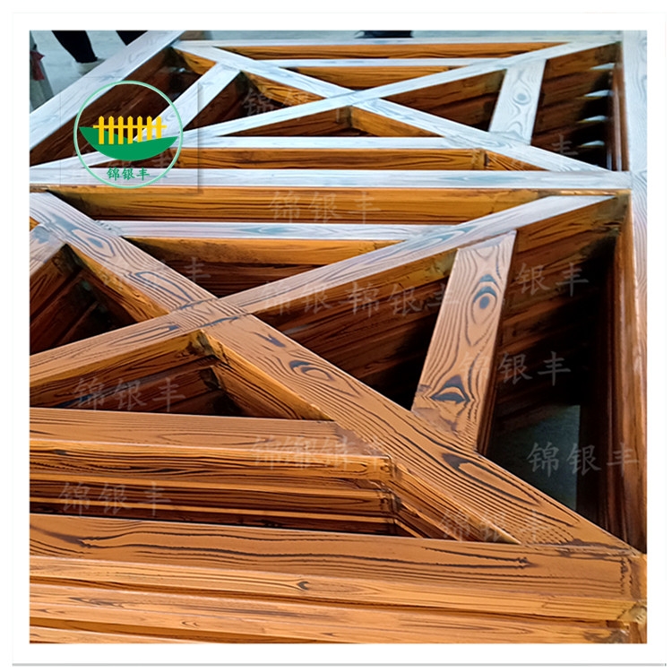 河南新乡护栏厂家木纹护栏木纹栏杆金属材质景区公园用栏杆。河南新乡锦银丰护栏厂家生产的仿木纹护栏外观漂亮,木纹纹路清晰,装饰效果非常好,而且材料的规格,大小和颜色深浅都是可以进行调配的。一般的木纹护栏,只要有图纸基本上可以按照要求加工,不用担心材料,无论大小型号都可以做成漂亮的木纹。木纹护栏可以使用在公园,小区,别墅,景观区,绿化,社区,河道,道路等的安全防护栏。