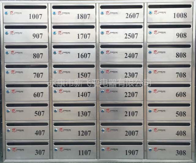 中国生态旅游城市浙江丽水顺佳铭苑不锈钢信报箱由永康市新飞亚电器有限公司友情制作