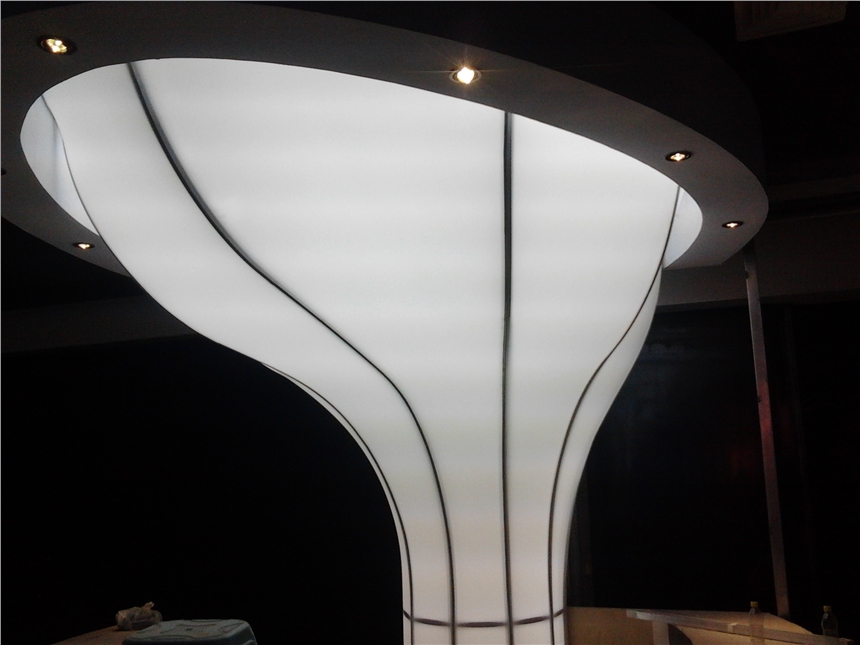 无限的创造力: 由于益彩软膜天花是一种软膜材料,根据龙骨的弯曲形状来确定天花的整体形状,所以造型随意,多样,让设计师具有更广阔的创意空间,是天花的一种革命。