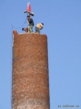 (二)高空维修工程:烟囱改造,烟囱清灰,烟囱检查,烟囱探伤,烟囱裂缝修补,烟囱加箍加固,烟囱碳纤维布加固,烟囱拆除加高,烟囱校正,烟囱更换内衬,烟囱顶口修补,检修或更换避雷设施,烟囱粉刷,轮窑维修、隧道窑维修、烟囱抽烟力不够等。