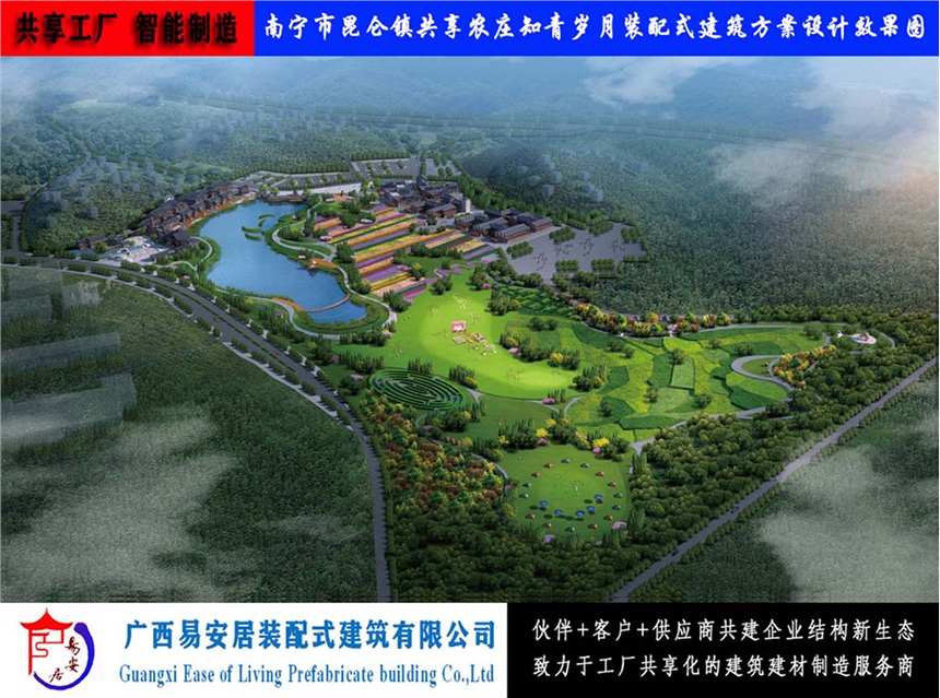 广西易安居设计制造并投资共享的民宿酒店及农庄突出“安、居、乐、业”四字方针,将闲置农村土地和环境资源充分利用起来,通过现代模块化装配式建筑组合,形成一房一院一地一情一民宿,并结合实际情况打造生活驿站、度假养生、文化创意的产业新链条,形成“民宿+农地+农庄”时代旅游的心灵港湾。产品进入了健康化、标准化、智能化、规范化的动作通道。装配式建筑风格多样化,可描绘出天空明净,阳光温暖,空气中弥漫着成熟的秋果的气息。可自然而然地进入“闲花落树鸣秋蒲,晚稻含香入暮年”怡然自得的心境;也可体验到“园林夕照明丹柿,篱落初寒蔓碧花”的景致。