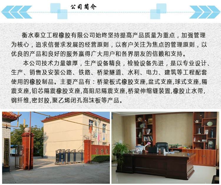 板式橡胶支座是橡胶支座中常见的一种,也是制作简单的一种,那么后期板式橡胶支座还会发展不?沿着什么方向发展呢?易转动型板式橡胶支座成了未来的发展方向。板式橡胶支座的转动性与支座的形状(长、短边尺寸,单层的橡胶厚度)、剪切模量、抗压模量等因素有关。在支座设计时通常考虑zui大转角进行验算,在支座设计中往往为了满足支座转角的要求,增加支座总厚度。此外由于支座的转动时,对梁体与墩台必然产生转动反力矩。 对于城市立交桥美观度考虑桥墩截面尽量减小,为此支座转动反力矩对桥墩的作用是必要的,因此必要研制一种易转动型板式橡胶支座,以便能在支座总厚不变的条件下,适应更大的转角需要。