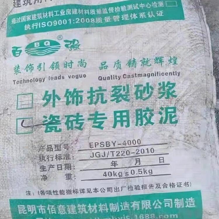 百强牌BY-1010型瓷砖胶泥又称(瓷砖粘结剂)是一种高品质环保型聚合物水泥基复合材料。它是选用进口聚合物胶结料改性优质水泥,再配以石英砂、多种添加剂、填料经精细加工而成,直接加水搅拌即可使用。本品粘结强度高、和易性好、保水性佳、调整时间长、瓷砖不流坠、耐水、耐高温、抗冻融、耐冷热变化、防水抗渗,具有良好的抗老化性能和长期的耐久性,避免空鼓和龟裂,操作简单,施工方便,工效、经济效益高。本产品无毒、无味、无污染、无腐蚀性产品。