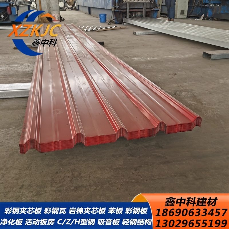A、950瓦楞彩钢夹芯板 集瓦楞板及夹芯板于一体,比普通平面彩钢夹芯板强度增加了三倍,采用隐藏式自钻螺钉与屋架联接,不破坏彩涂板的外露部分,延长了彩钢夹芯板的寿命;板与板联接采用扣帽式,便于施工,提高功效,特点不易渗水。