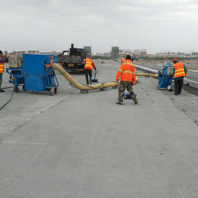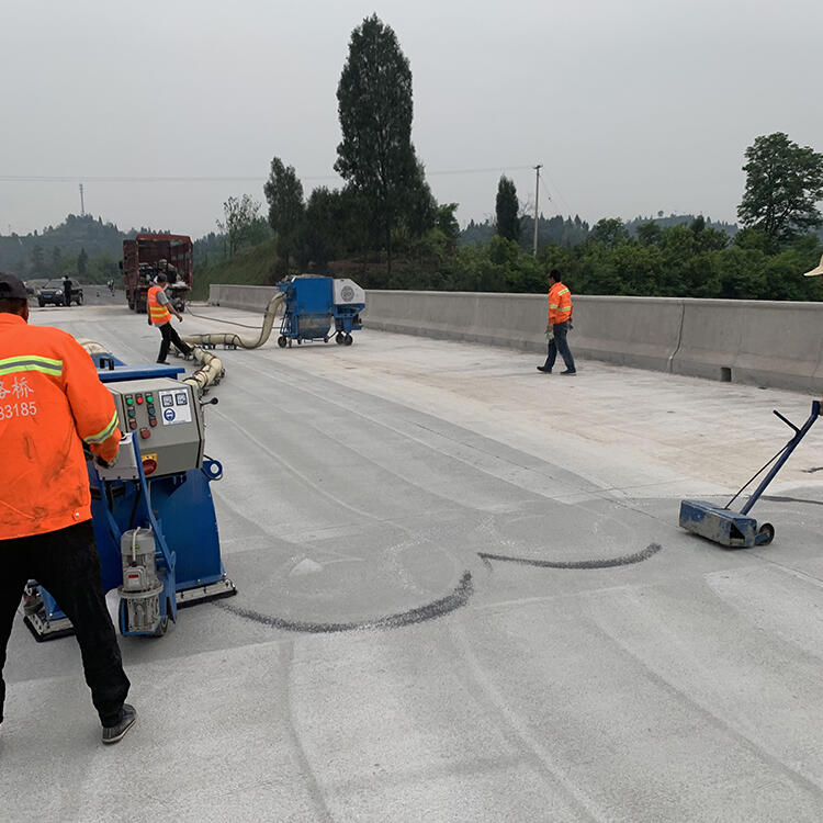 ⑴ 桥面初步清理:将桥面上堆放的小型机具和其他杂物清理干净,用人工清扫和吹风等方法对桥面进行初步清理,为抛丸施工提供一个清洁平整的工作面。