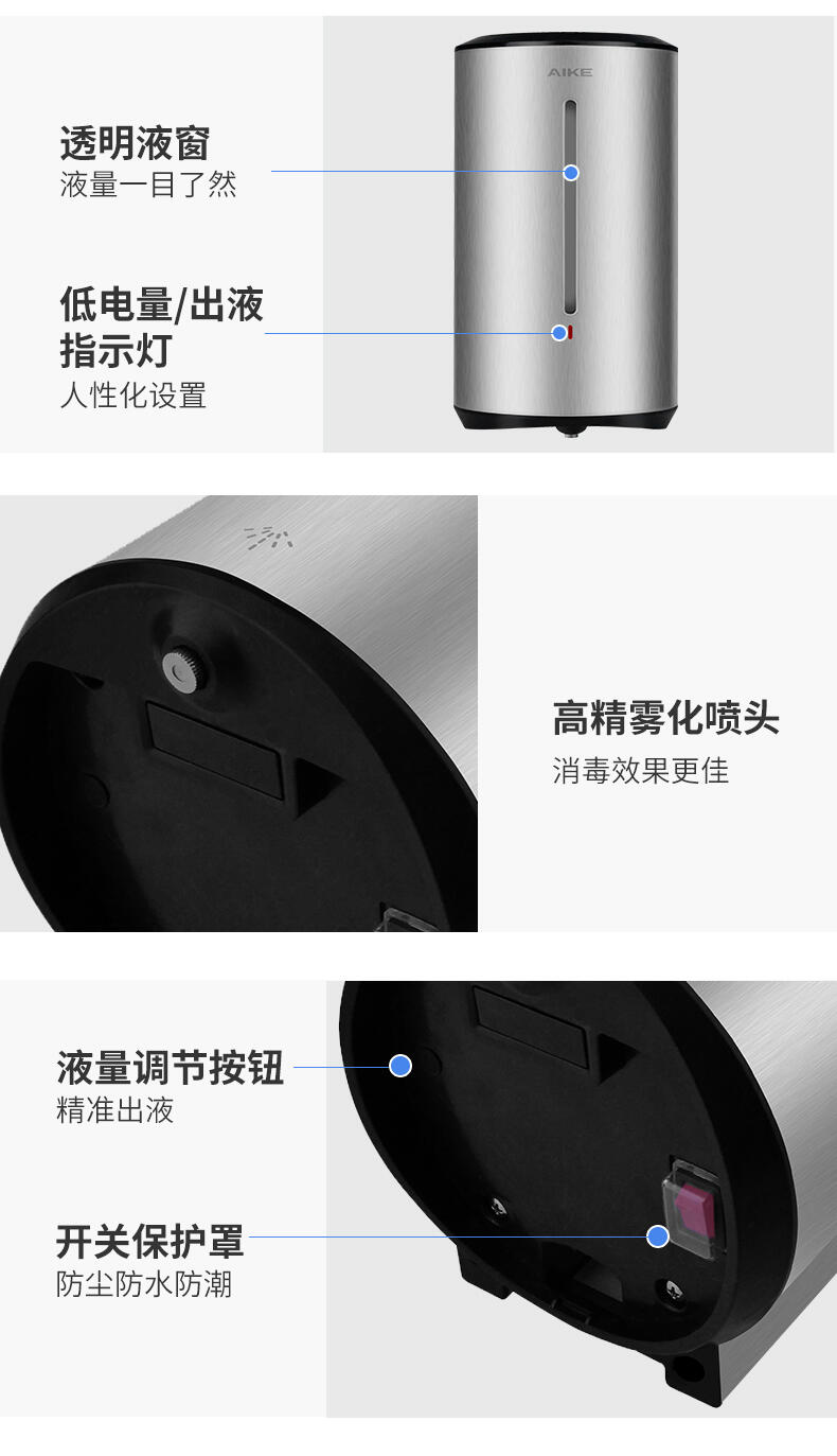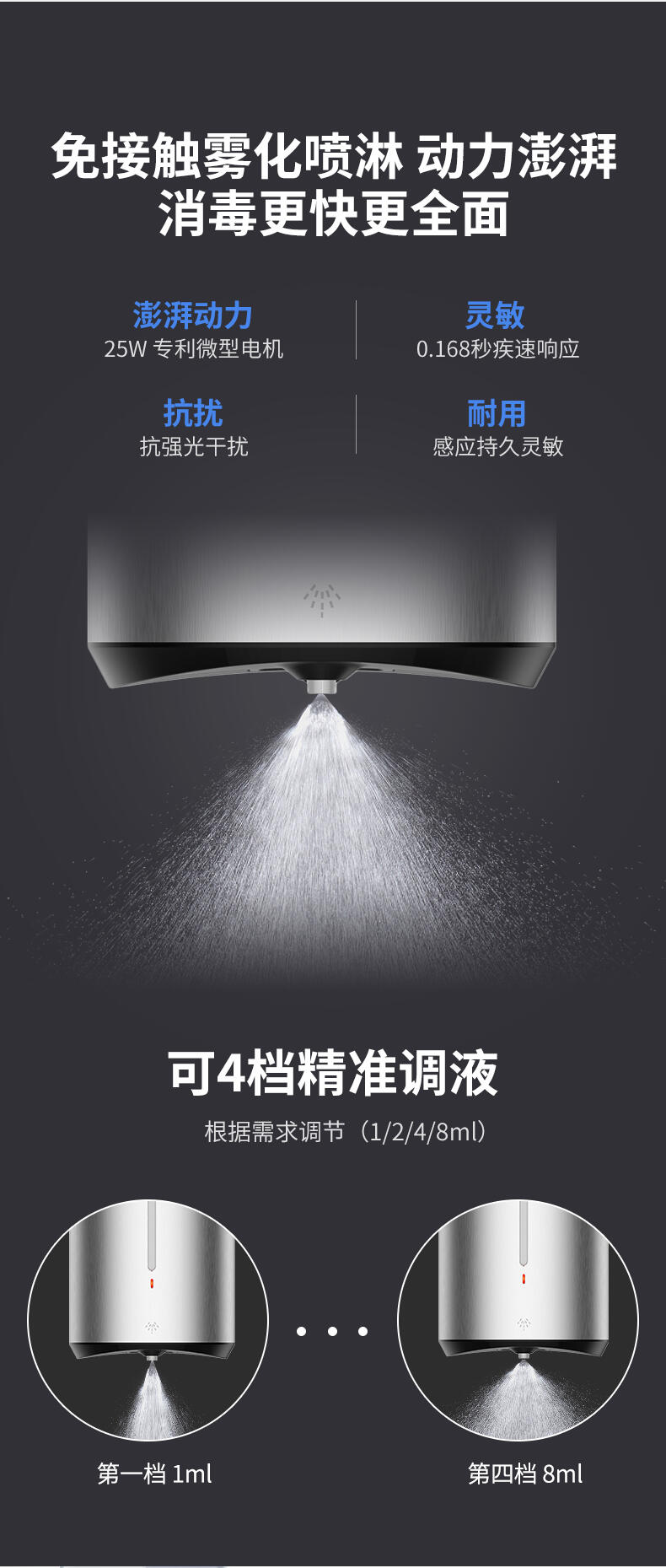 智能:微电脑控制全自动感应、伸手即可喷淋消毒、手离即停