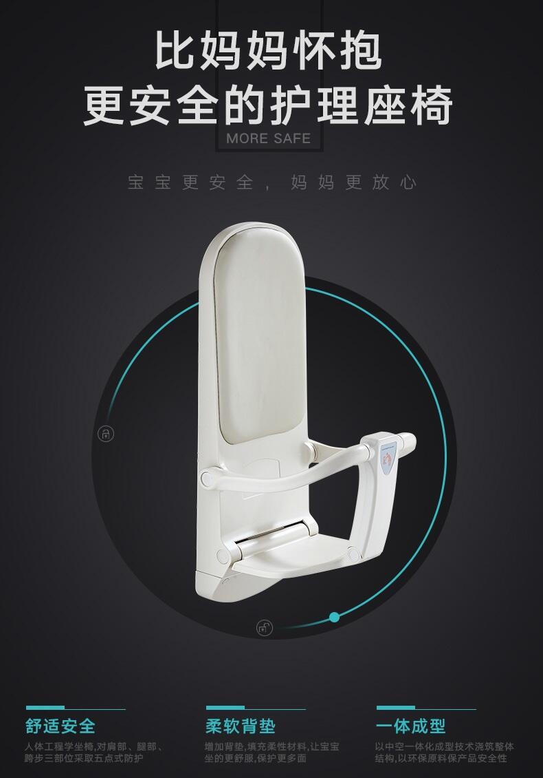 用于公共场所:商场、火车站、公共洗手间、机场、火车、飞机等地方的人性化产品,解决了婴儿出门没地方换尿布的困惑和麻烦,更为带婴儿的父母提供便捷安全的婴儿换尿布平台。 平滑流物的合页系统及不可视的轴杆设计能更好地保护宝宝,降低宝宝皮肤被夹的危险;角板支持装置增强此台的力量和稳定 婴儿护理台主要是在公共场所装置的便捷设备,又叫婴儿打理台,婴儿换尿布台,婴儿尿布台等。它可以提供父母和宝宝温馨的服务,在顾客需要给孩子整理衣服、换尿布时,可将婴儿平放在整理台上面,方便母亲为宝宝换尿。婴儿整理台采用抗霉、抗菌之高品质材质一体成型,特殊圆角设计,安全可靠。台面宽大,配有可调整的安全带,既方便了带婴儿出游的妈妈,也让环境卫生有了基本保证条件。在发达国家,婴儿护理台已经成为公共卫生间的标配产品,随着国内卫生间设计的逐步完善,婴儿护理台也将被越来越多使用者接受并采纳。中文名: 婴儿安全座椅