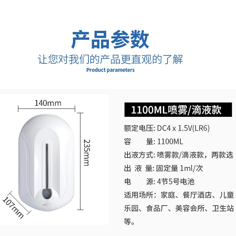 免接触设计,防止二次传染;具有红外线自动感应装置,双手只需近距离一动,液体即轻盈而出。