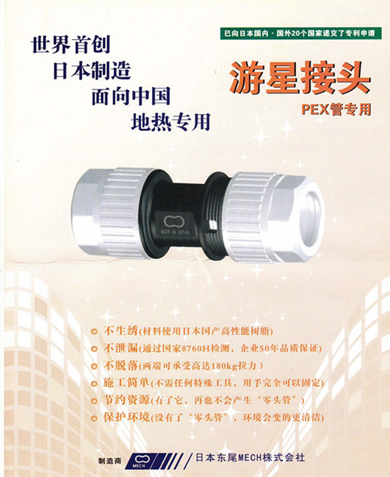 ? ? ? ?日本东尾株式会社生产的PEX地暖管接头,我司是中国区总代理,直接日本厂家进口,诚招全国代理商加盟代理合作。