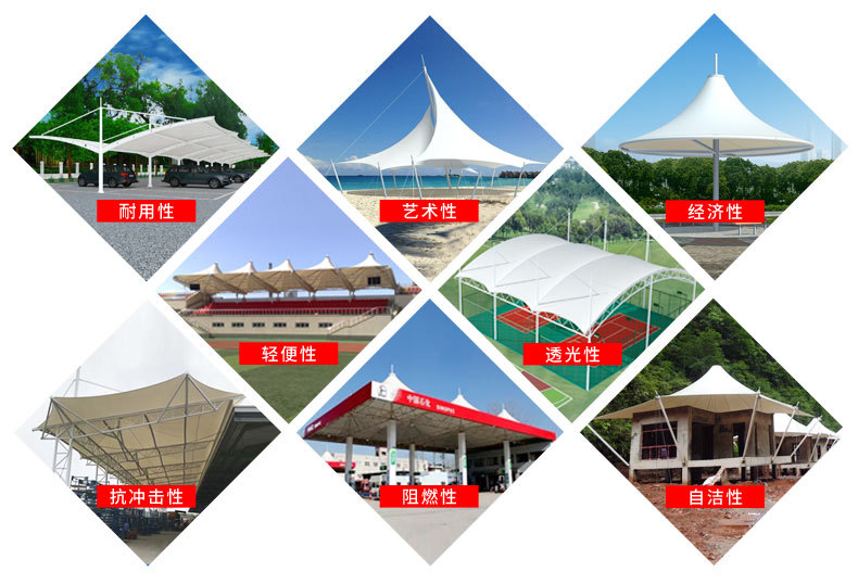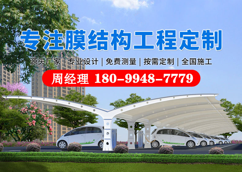 乌鲁木齐汽车充电桩车棚安装 张拉膜停车棚图纸设计 PVDF 膜材批发