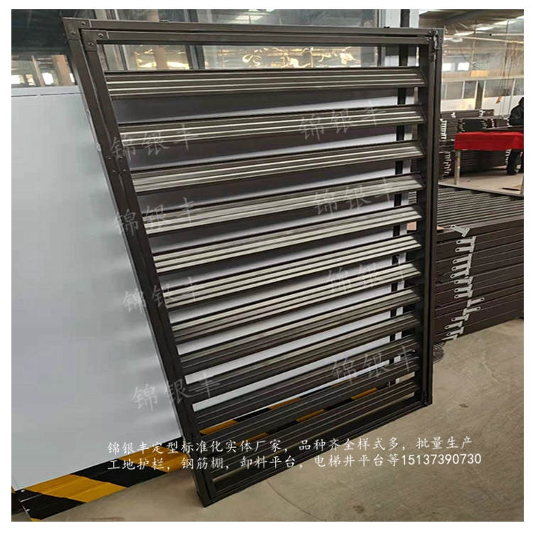 新乡锦银丰锌钢百叶窗厂家通过多年与客户合作有良好的实际生产经验,而且生产的建筑工地标准化护栏,工地施工护栏,基坑围栏网,基坑临边防护栏杆等样式多品种齐全,比如我们看到的建筑护栏,锌钢百叶窗是专为建筑工地防护楼宇设施应用的防护百叶窗。