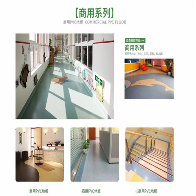 应用广泛由于PVC地板独特的材质和强的性能,加上铺装方便,施工快捷,价格合理,安全性高,被广泛运用于办公室、学校、药厂、运动场所,餐厅、酒店等公共场所和个人家庭。