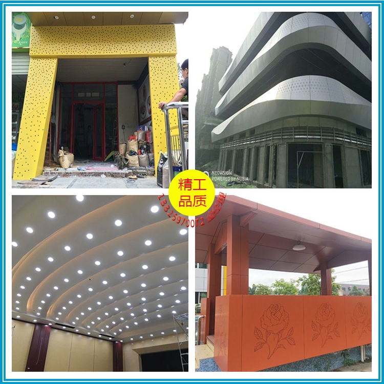 粤艺佰铝单板构造主要由面板、加强筋和角码组成。角码可直接由面板折弯、冲压成型,也可在面板的小边上铆装角码成型。加强筋与板面后的电焊螺钉连接,使之成为一个牢固的整体,极大增强了铝单板幕墙的强度与刚性,保证了长期使用中的平整度及抗风抗震能力。氟碳铝单板是由优质合金铝板为基材,在工厂里进行钣金加工,表面化学处理,并且进行喷漆、烘烤、固化等工艺制作而成。铝单板通过吊挂于建筑主体结构外侧 的轻质的围护墙面,使其形成大面积连续墙面,称之为铝单板幕墙。户外用铝单板厚度一般选择 2.5mm、3mm;低层和裙楼部分可选择 2.0mm 厚度,室 内墙面与吊顶用时可选择薄1.0mm 或1.5mm。电梯铝单板 蓝色铝单板厂家供应