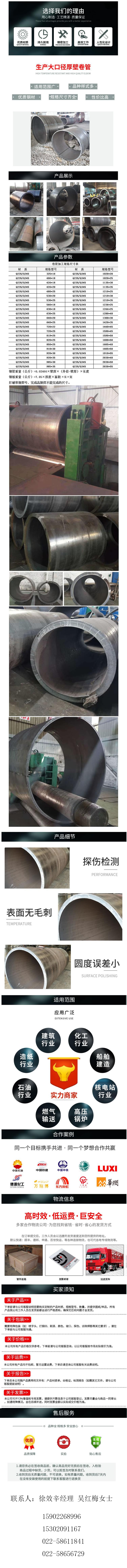 天津富鹏源金属材料有限公司生产钢板卷管,厚壁卷管,大口径卷管,厚壁卷筒,钢板卷筒的厂家,公司生产的厚壁卷管,大口径卷管远销国内外各大工程建筑。 公司拥有4条大口径厚壁卷管生产线,生产规格从Φ219-Φ3500mm,生产壁厚从6-100mm, 天津富鹏源金属材料有限公司卷管生产的大型卷管,厚壁卷管的卷管的材质: Q235B、Q345B、20#、 45#、16mn、L245、L290、L360、ASTM A106B 、ASTM A53 B 、API 5L GR B、JIS G3454 STPG370、JIS G3452 SGP、JIS G3444 STK400等。