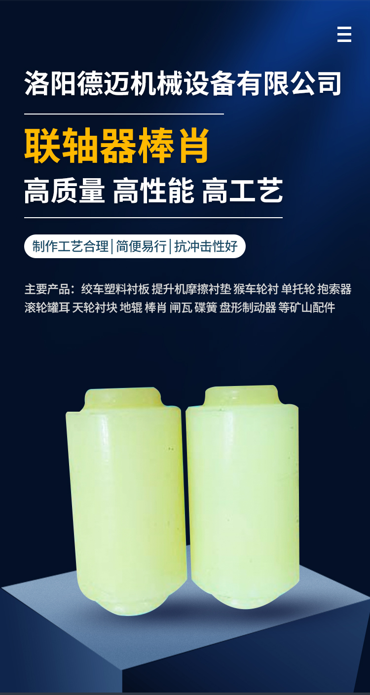 用途 | 联轴器棒销主要用于提升机联轴器中,因其具有弹性好、强度高、延展性、抗冲击性好等优良性能,所以能够确保提升机在低温等恶劣环境下正常运行,使用寿命长,维修频率低。 |