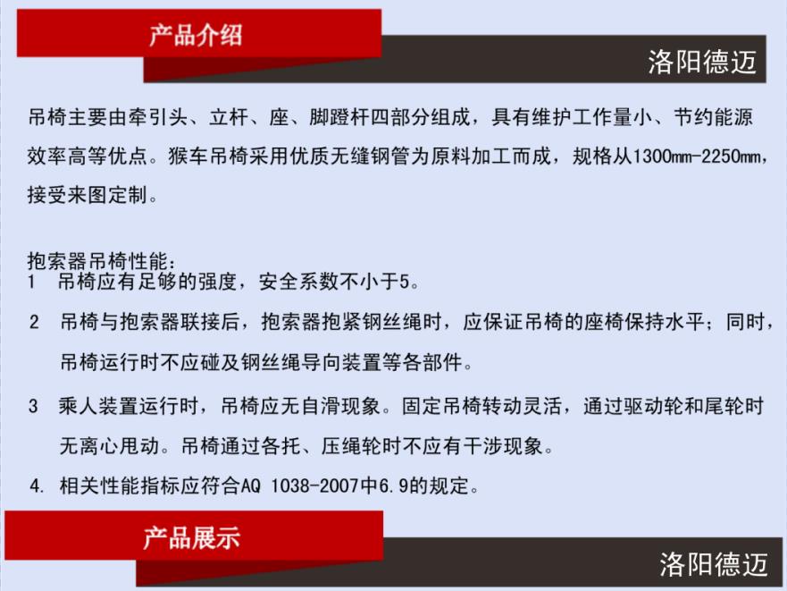 煤矿下井抱索器吊椅带皮坐垫吊猴猴车座位加工人行车座椅