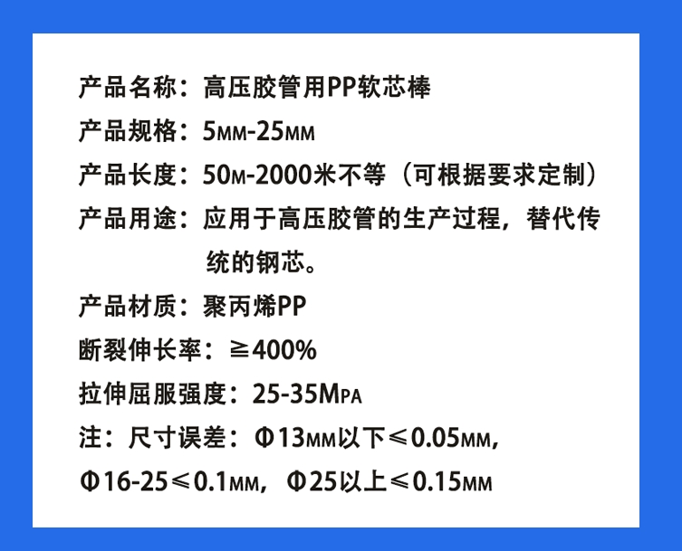 河北耀承橡塑制品有限公司创建于2018年,占地面积8千多平方米,拥有员工50多人,其中技术人员10人,检测人员15人。拥有专业的生产、制造设备和精密的检测仪器,我公司是以新型聚丙烯材料(PP芯棒)为核心的生产企业,主要生产pp棒、胶管芯棒、胶管芯轴、胶管软芯,树脂管尼龙软芯等产品、专注于橡胶软芯产品研发与应用的技术型企业,并通过ISO9002国际质量体系认证。