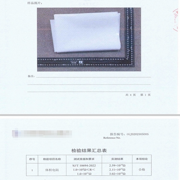 防静电阻燃塑料布检测结果: