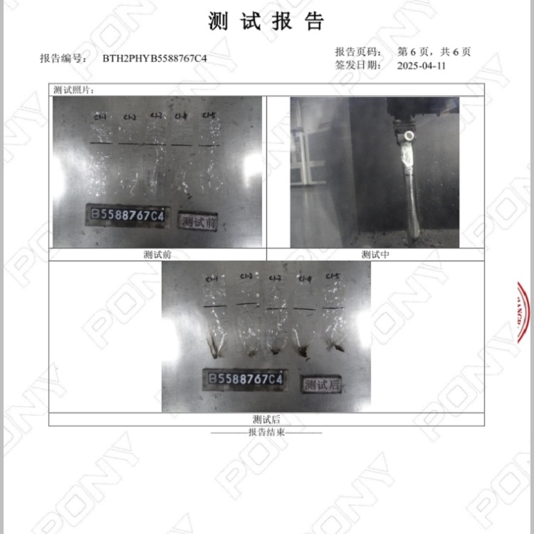 阻燃标准:UL94VTM-0等级测试:试样持续燃烧时间0秒,未燃烧至125mm标线处且未引燃脱脂棉