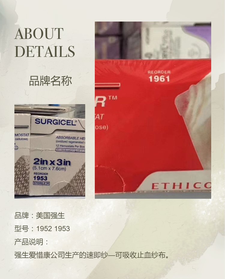 强生爱惜康公司生产的速即纱—可吸收止血纱布。