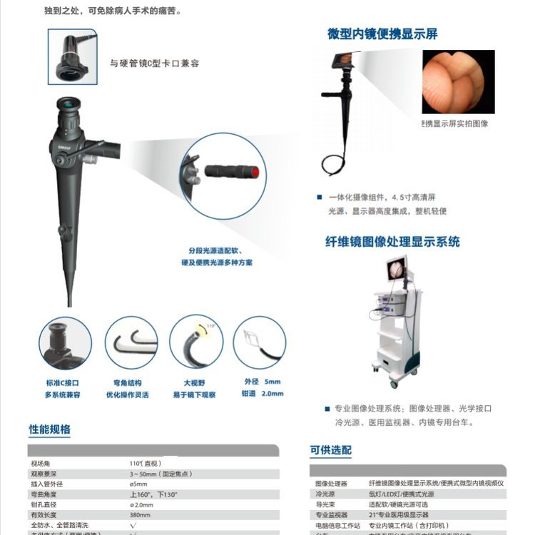 胆道镜内窥镜纤维胆道镜电子一体化摄像组件4.5寸高清屏光源