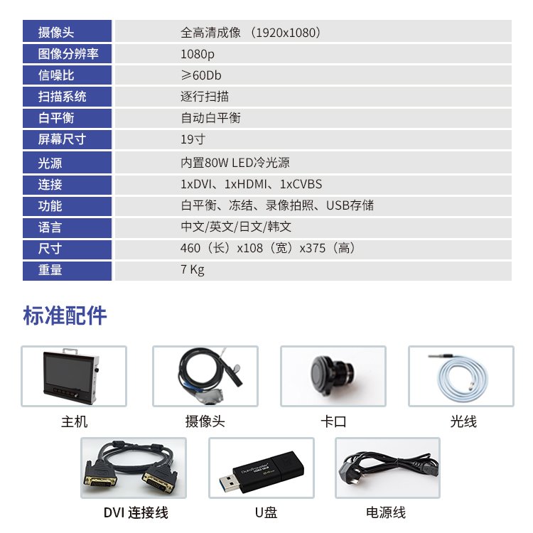 应用 | 可用于兽用腹腔镜、兽用膀胱镜、关节镜、耳镜、鼻咽喉镜等内镜检查和微创手术 | ||