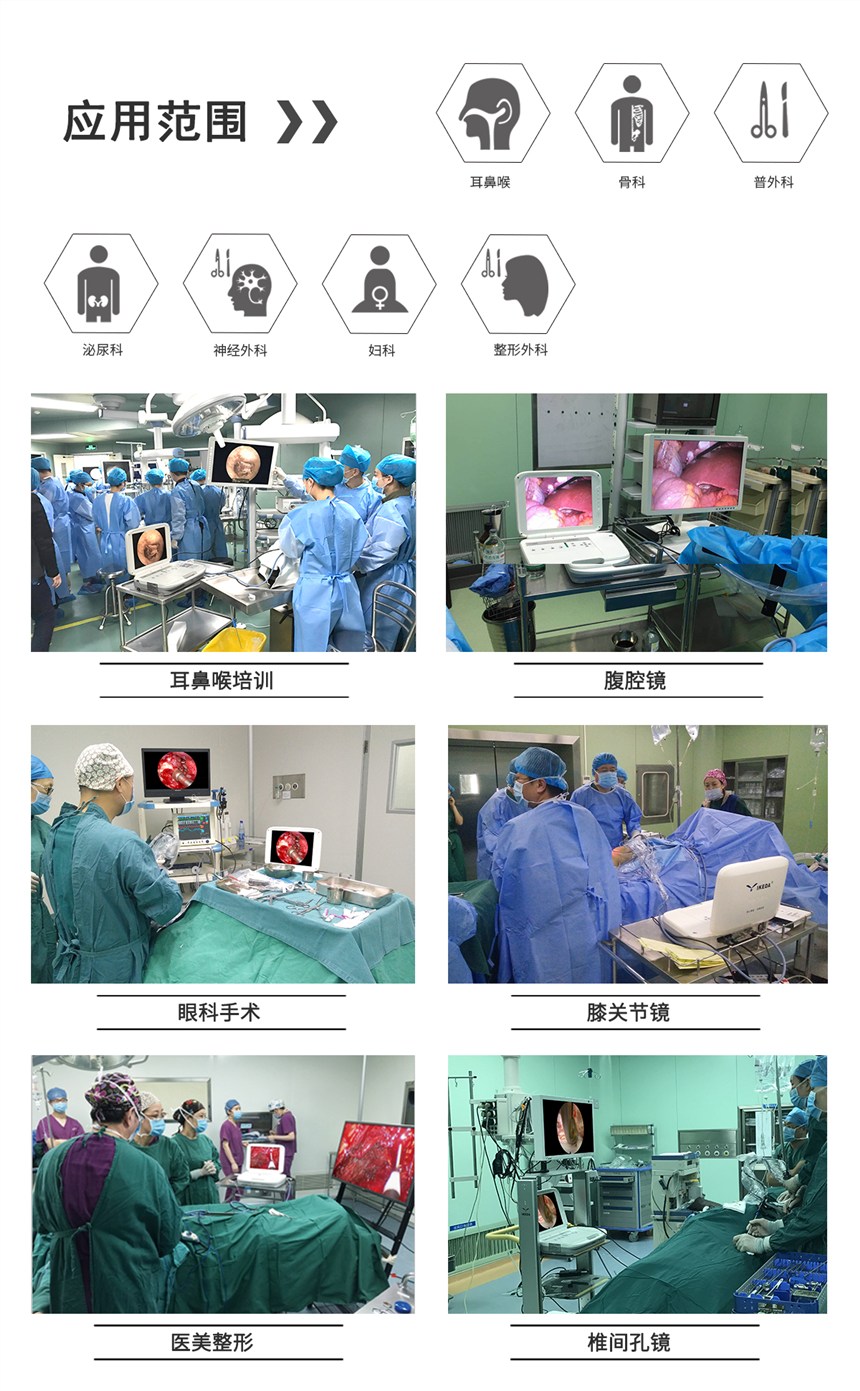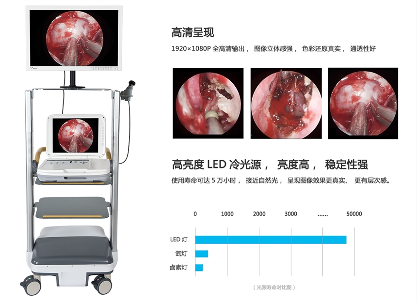 3、定义内窥镜摄像机新理念: 一套设备=2套设备 (既是一体化的便携设备,又可外接高清监视器当做台式内窥镜使用) ;