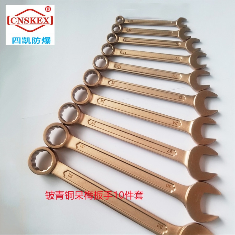 河北四凯防爆工具防爆双头呆扳手(也被称为双头开口扳手)是将两个规格大小不同的防爆呆扳手组合在一起,让工作人员使用起来更加方便快捷。