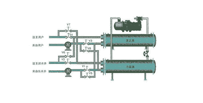 其采用循环流动于共用管路中的水、从水井、湖泊或河流中抽取的水或在地下盘管中循环流动的水为冷(热)源,制取冷(热)风或冷(热)水的设备;包括一个使用侧换热设备、压缩机、热源侧换热设备,具有单制冷或制冷兼制热功能。